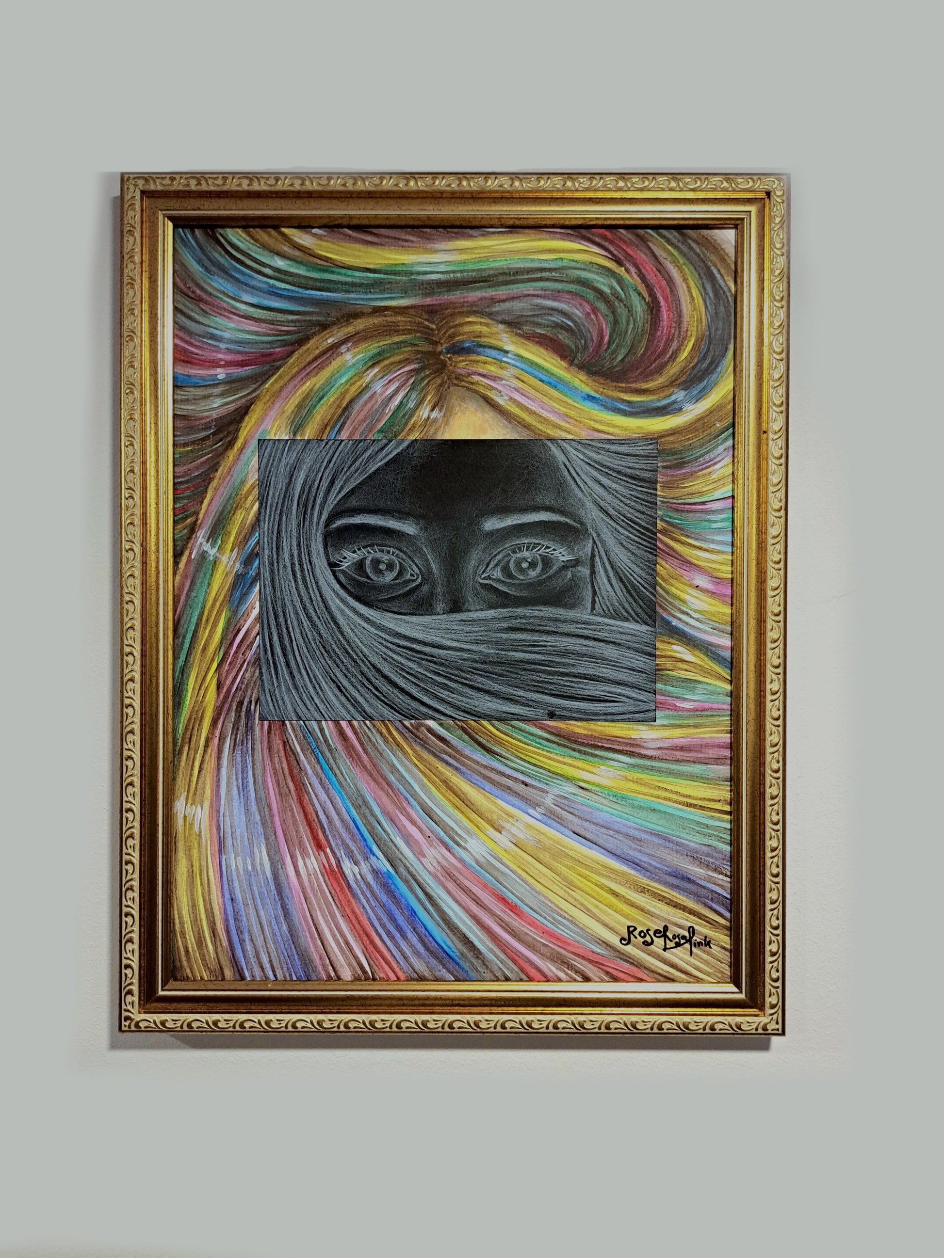 Acryl auf hochwertigem Posterpapier. Die schwarz-weiße Zeichnung in der Mitte befindet sich auf einem zusätzlichen, mit Bleistift vorbemalten Papier. Größe: 30 x 40 cm. Rahmen und Glanzlack sind im Preis inbegriffen. Bitte teilen Sie mir mit, ob Sie den Rahmen und den Lack wünschen.